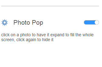 Photo Pop option will let you expend image on the full screen when you click an image. For hide image again click on the image.