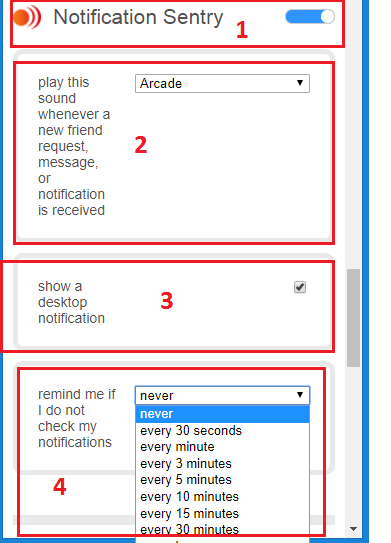 - Notification Sentry: Move the button to right and Enable the Notification Sentry.