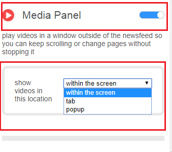 Media panel feature will allow seeing any video in outside windows of news feed so you can easily browse your Facebook without stop any videos.