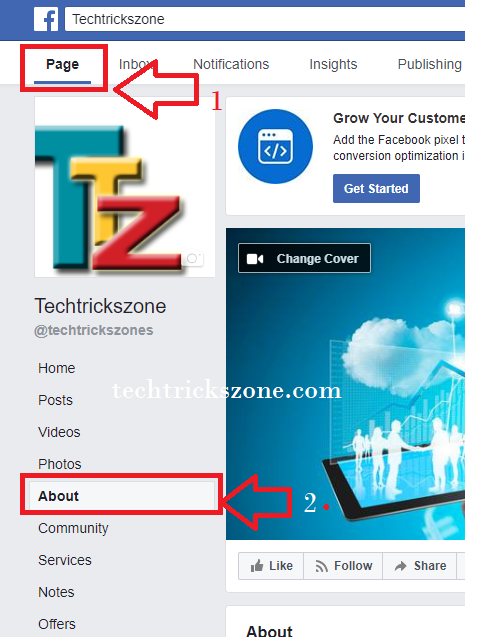 If you are maintaining Facebook page but did not set any username for your page then see the simple steps how to set a username for the Facebook page. To change Facebook page name follow the steps below.