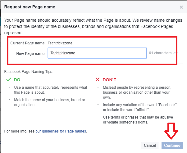 Before going to change Your Facebook page name please go through the Facebook policy guideline and check the new name you decided will not avoid any policy terms. Many people ask why unable to change the Facebook page name, why Facebook reject to change the new Facebook name. This type’s situation comes only when you don’t follow the guideline. So to avoid rejection of Facebook page rename for your official and personal page read do or don’t steps.