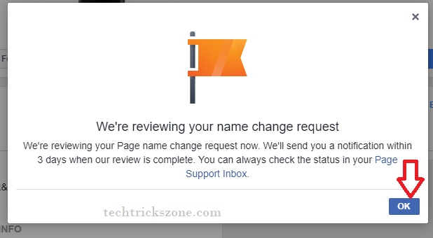 Now, wait for 3 days to get a notification from Facebook about your Facebook name change or rejection. If it’s accepted then enjoy your page. If it is rejected then you have to wait for some time to again send a Facebook page request until the change name option enables in your Facebook page.
