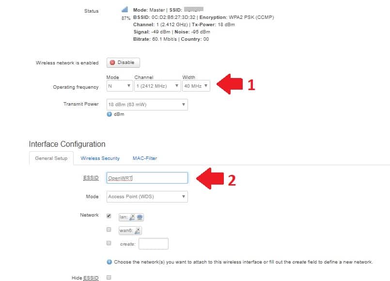 2: ESSID – Type OpenWRT AP device name ( this name will search on the client device)