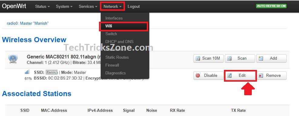 Click the Edit button to configure OpenWRT Operation mode to Access Point.
