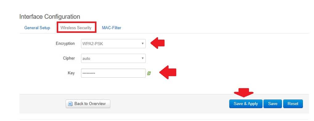 Wireless Security: WPA2-AES ( This security type will auto-selected as per OpenWRT security type.