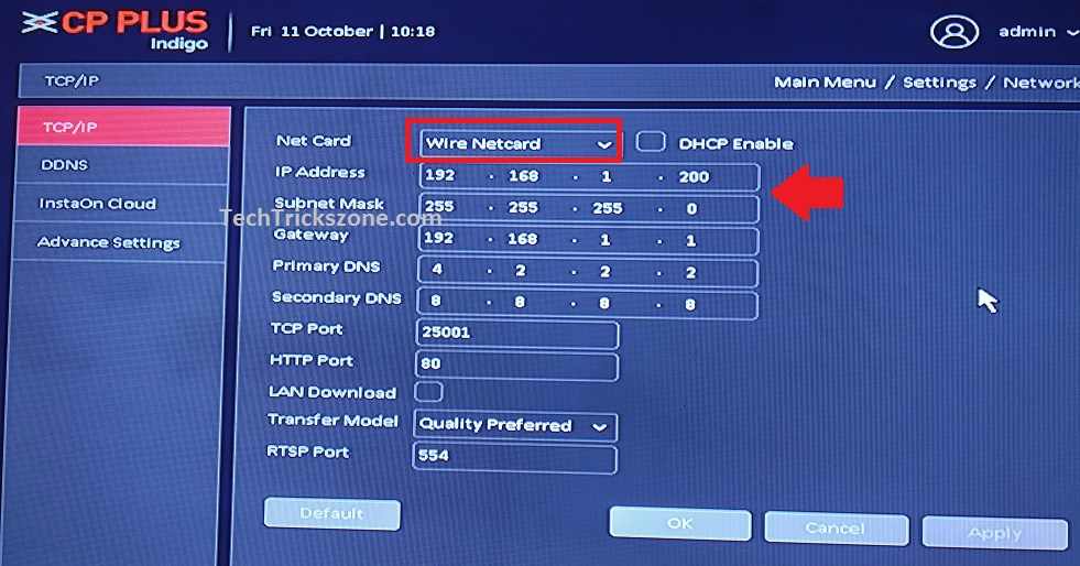 Change CP CP Plus Default LAN IP Address or use the DHCP option if DVR connected to Router.