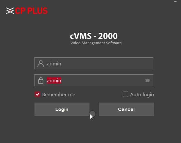 Open cp plus camera viewer software in pc and login with the default username password.