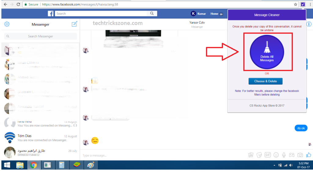 Although it’s a free Extension for deleting multiple Facebook messages in one click but keep in mind this tools only work in Google Chrome. It will not add and work in any other web browser like internet explorer, Firefox Mozilla, and all other third-party browsers.  this post describing extension facebook fast delete messages extension but you can use another extension for same.