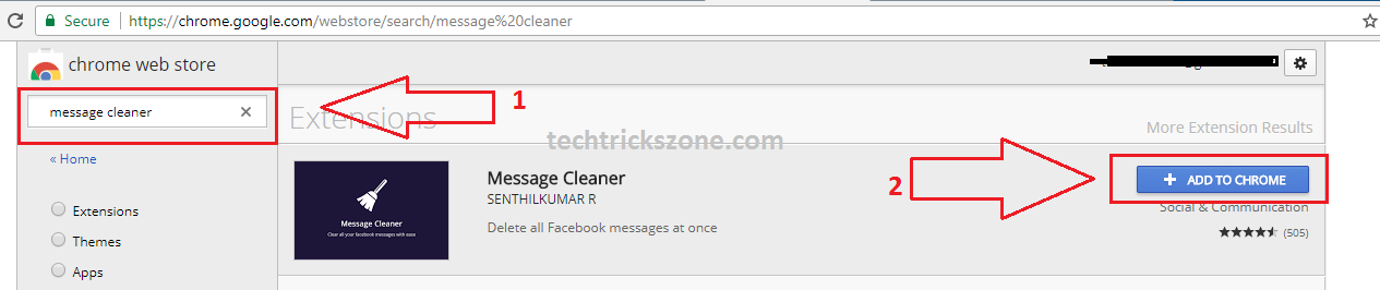 For adding the extension in your Google chrome browser visit Google Chrome Store and search for Messages Cleaner Extensions in the search box.