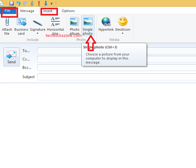 Step 1: Open your outlook or Win Live Mail and the open window for new email messages as given picture.