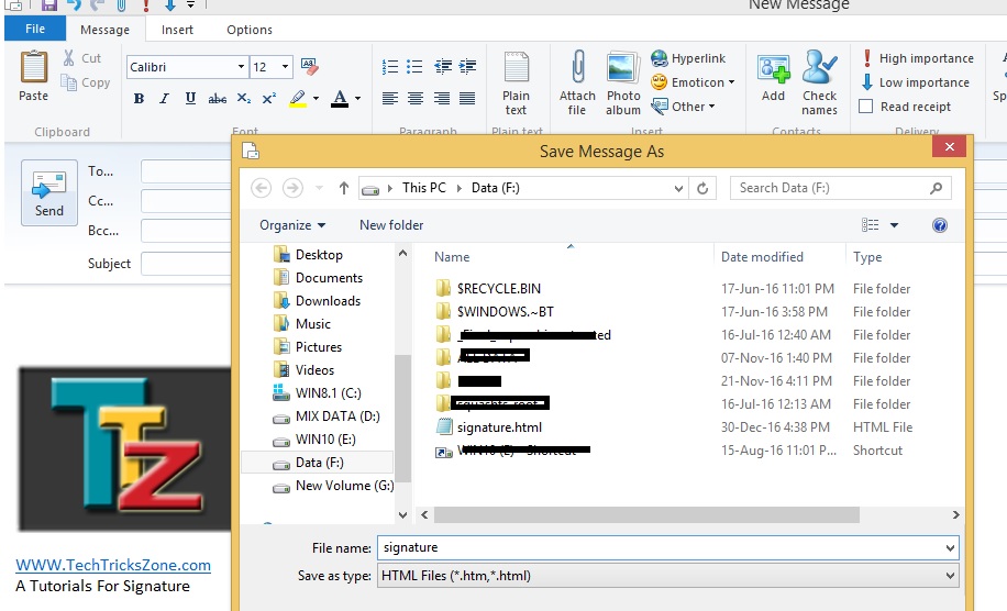 Step 3: Now save the signature in HTML format. Go to the file and save it as the file.