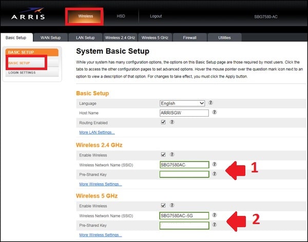 Always change Arris router default Wi-Fi password before connecting to the network to avoid access from unauthorized devices. Once arris surfboard login router and find the wireless tab or go to the quick setup tab.