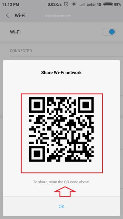 Scan the QR code to reveal your Wi-Fi password. This option also use to get any saved password in mobile.