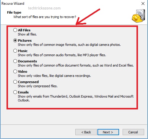 Use Recuva advance mode to directly choose the drive and files to get back which accidentally deleted photos from your phone, memory card or hard drive. You can also recover deleted files or formatted external USB drive data with deep scan feature.