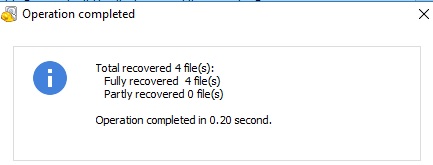 You will get the message once you are all files saved in the folder with the total file recover.