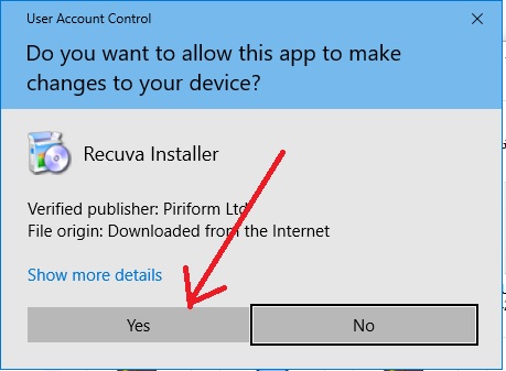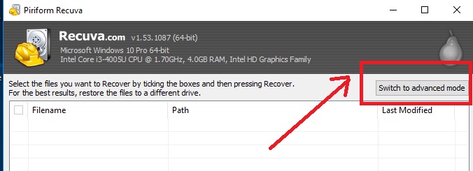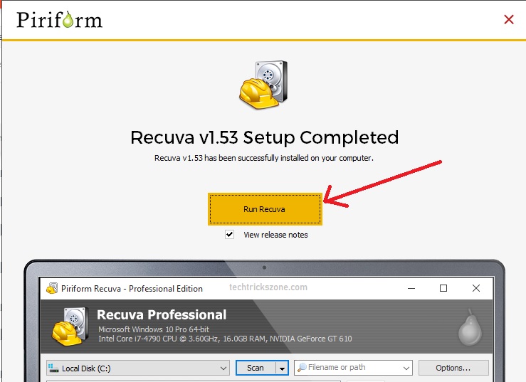 - Run Recuva software exe file.