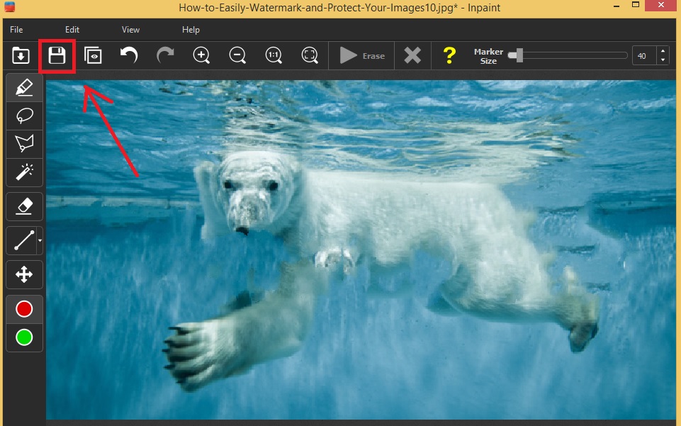 Click the floppy icon to save the new image without watermark in your drive.