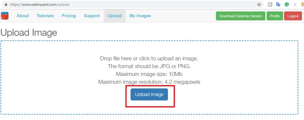 You will get the online tools with the upload image option as shown below image.