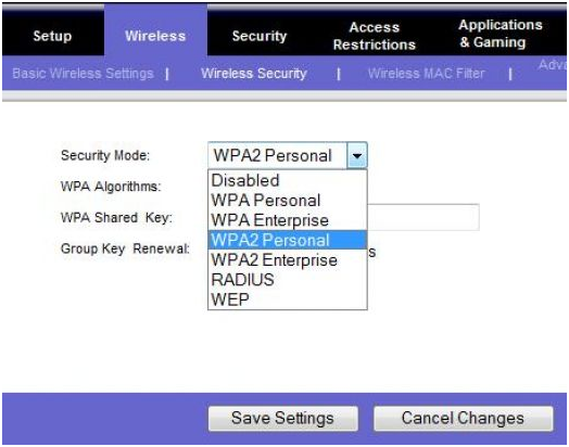 - Wireless Security Type.