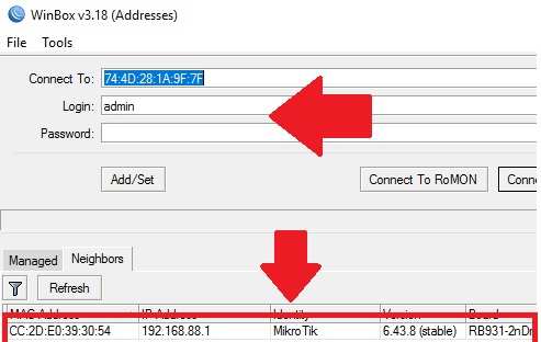 Connect the MikroTik router and log in with the Winbox configuration utility.
