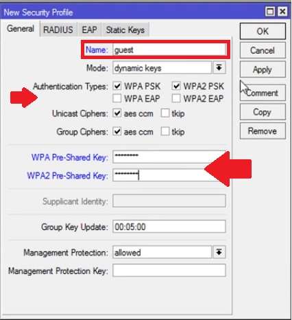 Name: Guest (type the security profile name you to identify while providing to virtual AP network)