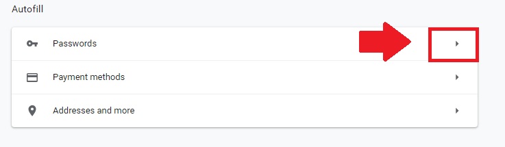 Click on The Arrow icon of Passwords option as shown below image.