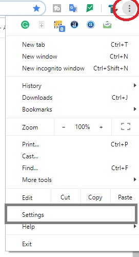 Open Chrome browser and click on the settings in the left side vertical dot.