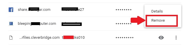 Click the Remove option to delete your saved password from Google Chrome browser.
