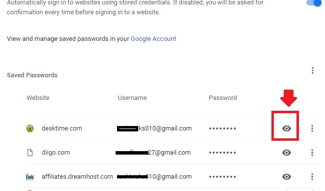 After expending passwords you will the list of all saved password and username in Chrome browser.