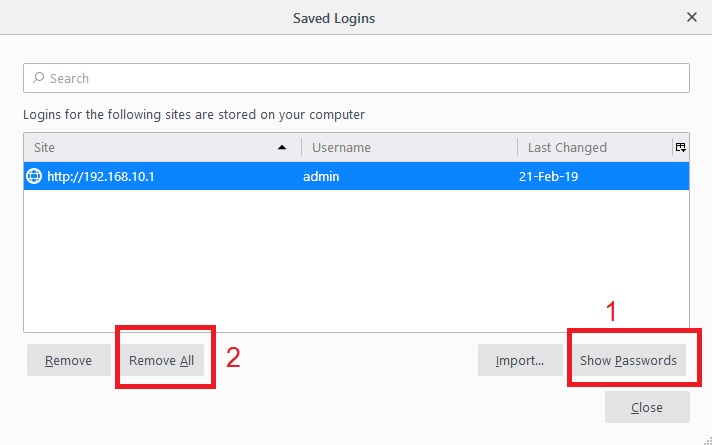 2: Remove All Password– to clear all the saved password and username in Firefox browser delete the Remove All button.