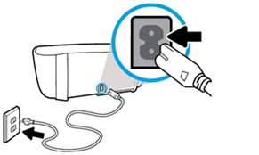 Power cable having 2 female pins for connecting the printer side and male switch to connect with the power socket. See the printer backside and connect the power cable to power on the printer. Follow the picture below.