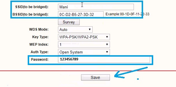 SSID- set the Repeater SSID in this box. ( you can use the same WiFi name as running on the main WiFi router)