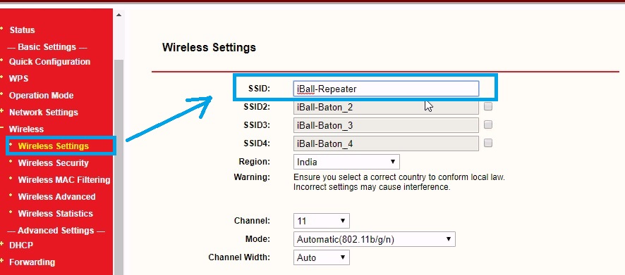 I-Ball N300 Wireless Router Repeater SSID Configuration.