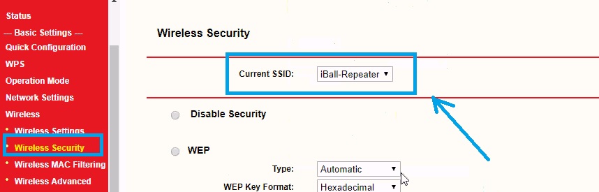 Choose WPA-PSL/WPS2-PSK to make a stronger wifi password for your I-ball repeater device.