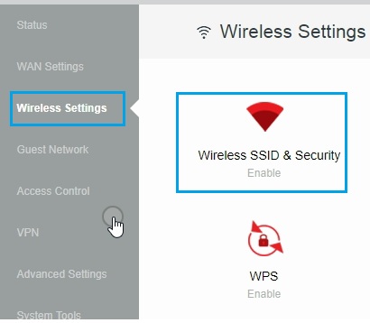 Click on Wireless SSID & Security