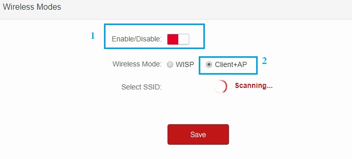 2: Wireless Mode- choose Client+ AP