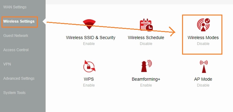 Go to Wireless Setting—Wireless Modes