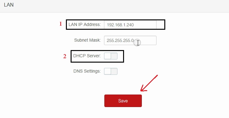 - DHCP Server- Disable the DHCP server for repeater mode.
