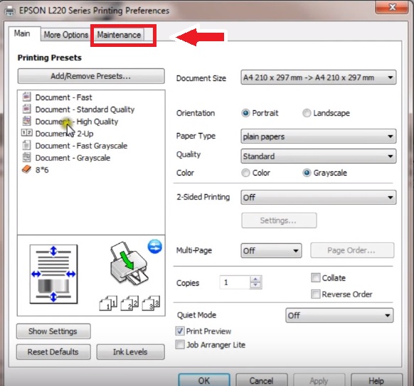 1: Epson L Series Ink Tank Printer Head Cleaning