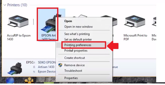 Right-click on the printer and go to “Printing preference”