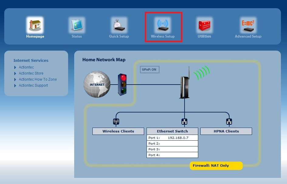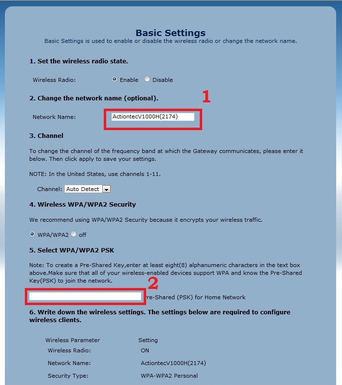 Set Actiontec V1000H wifi password to protect Wireless internet.