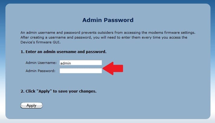 Press the Apply button to save settings. Re-login Modem router with a new username and password.