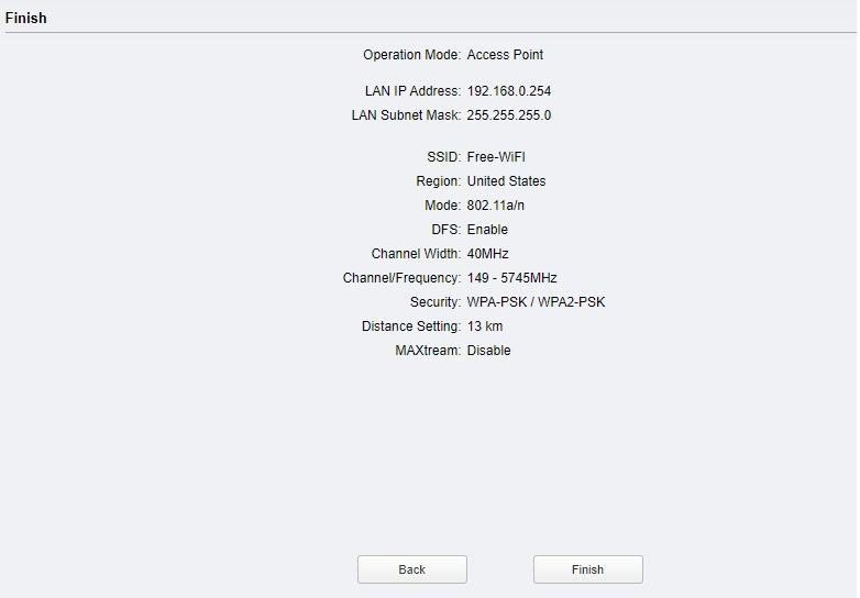 Once all settings look good press the finish button and wait until the device reboots.