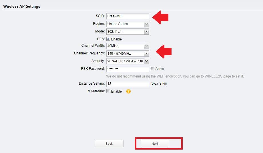 Channel/ Frequency: Select the frequency from the list as per your telecom regulatory and working in the area.