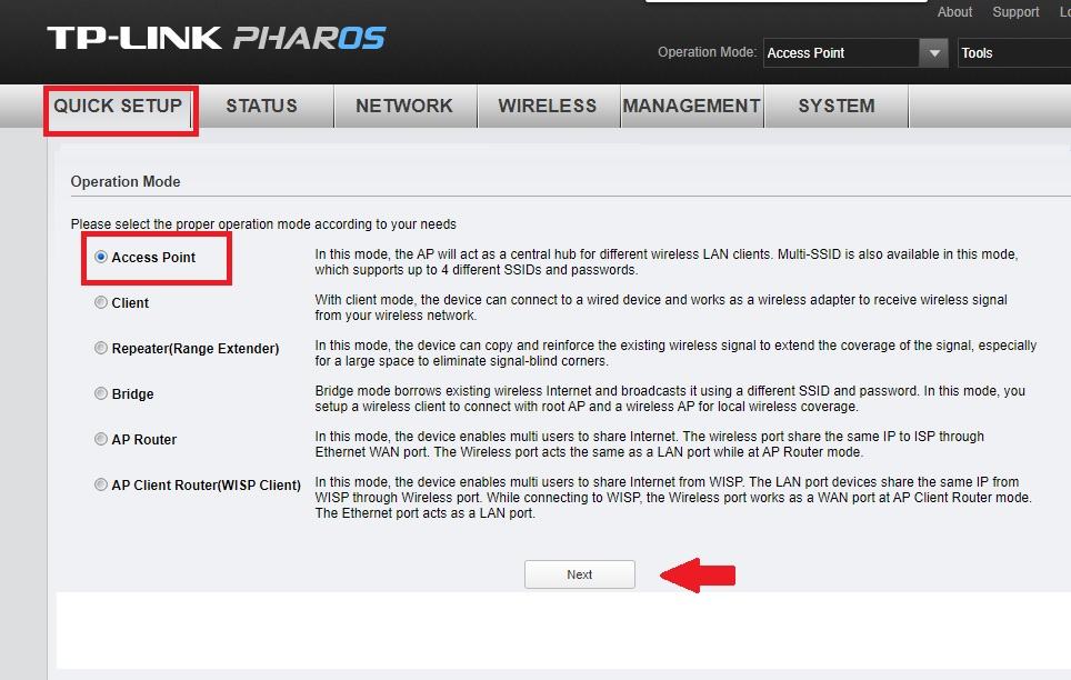 Once you are log in to AP settings now follow steps to set up step by step base station mode and other wireless parameter configuration.