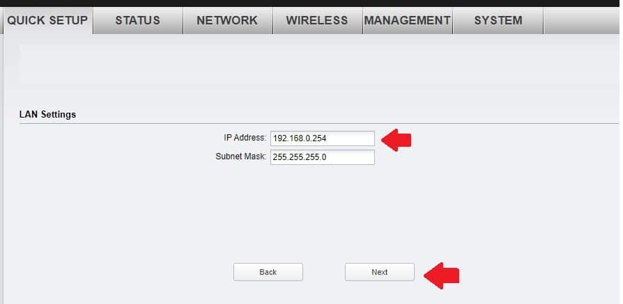 EXP- 192.168.0.254 is tp-link default login IP use 192.168.0.100 in PC/Laptop LAN static using Static IP address mode under TCP/IPv4 configuration.
