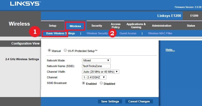 Now set up wireless in Linksys router to secure WiFi name and password.