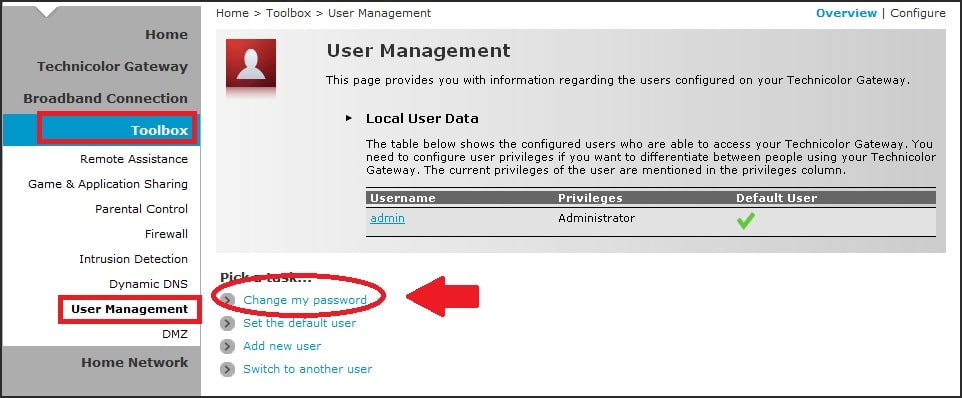 Change Technicolor Router Login Password