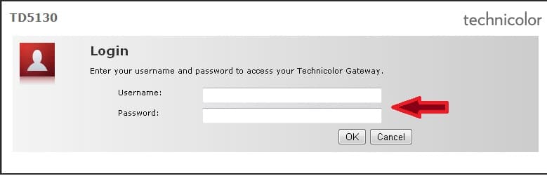 Enter your username and password to access your Technicolor gateway.
