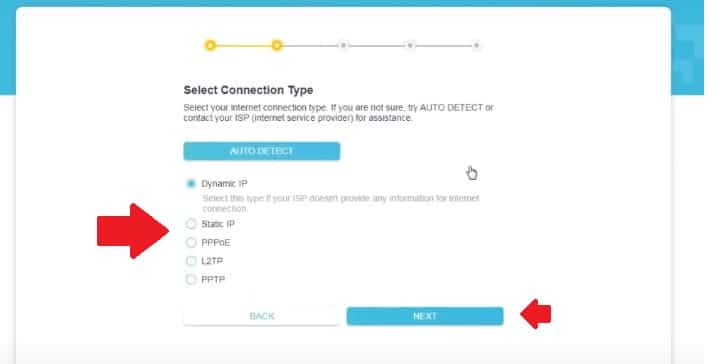 In this first step, you will get the option to choose your country time zone for your router. Select your country and press the next button for Internet WAN configurations.